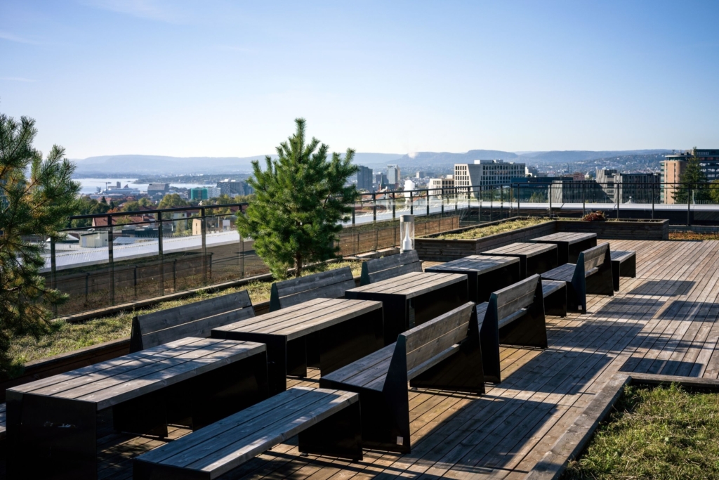 Herlig og grønn takterasse hvor man kan nyte frisk luft og solfylte sommerdager.